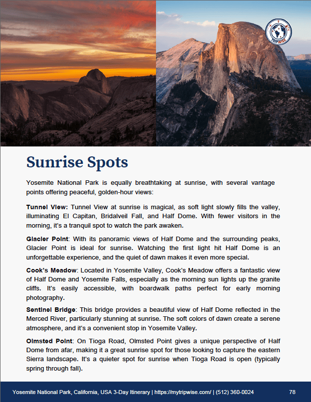 From Tunnel View at sunset to the towering sequoias of Mariposa Grove, every detail is mapped out so you can focus on making memories (and not worrying about trailheads or park shuttles).